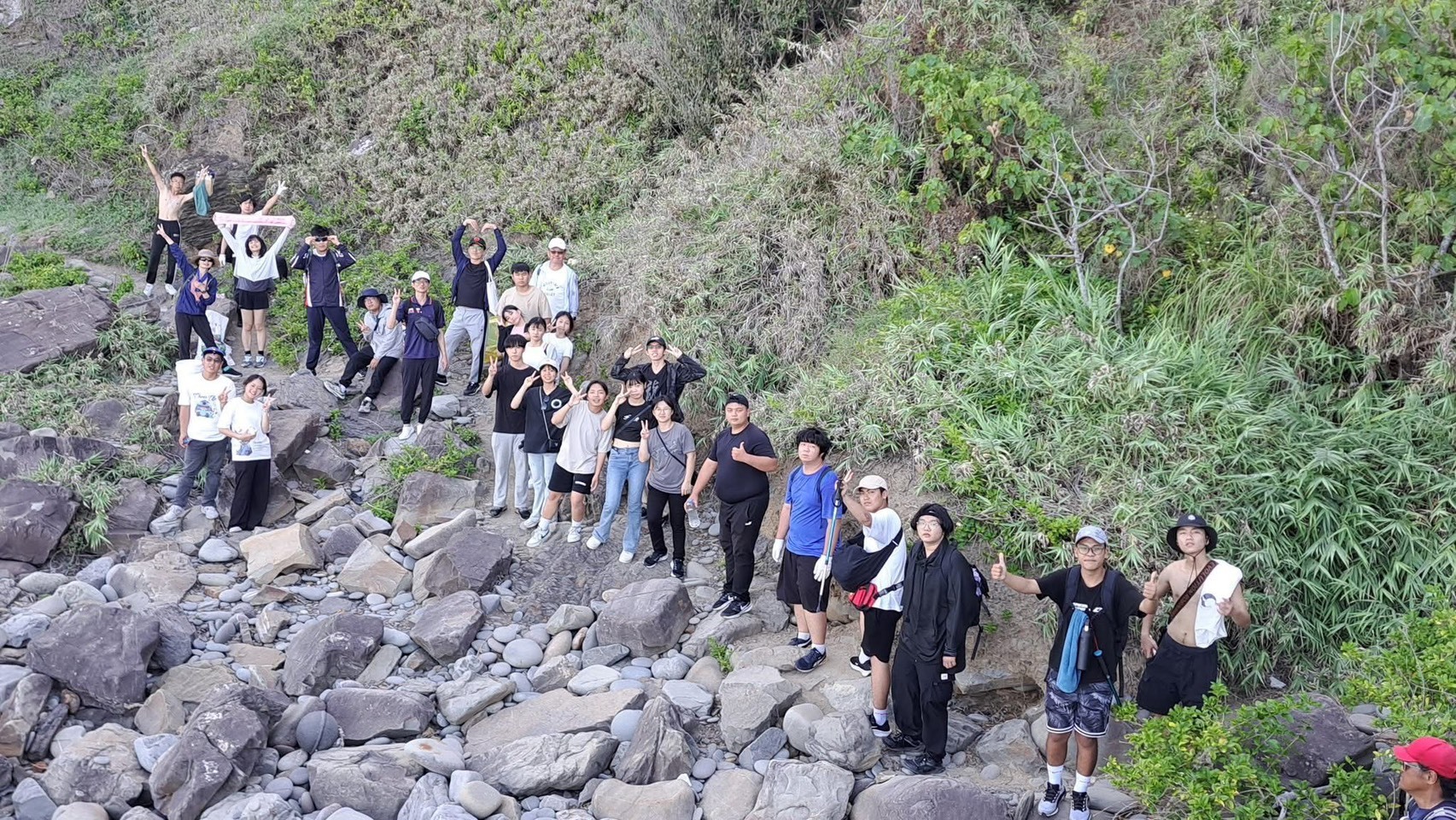 活動當日,陽光熱情無比,「臺東藍」與壯闊海岸相伴下,隊伍從南田出發走至旭海,途經礫石灘、蜿蜒小徑與陡峭「好漢坡」,雖然過程艱辛、體力耗費極大,卻在登上觀音鼻山後見到壯麗海景時倍感值得。許多同學坦言,中途曾懷疑自己是否能完成全程,但憑著一路彼此打氣鼓勵與團隊合作,終於成功挑戰極限,體會「困難背後即是風景」的深刻意義。