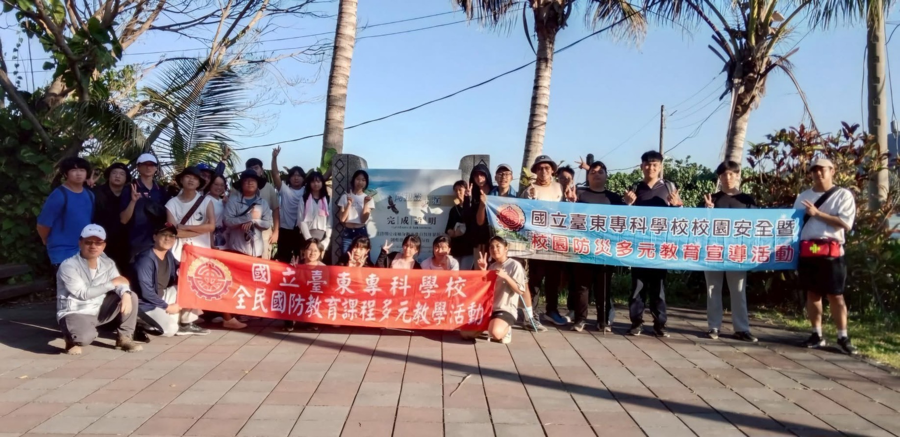 為深化全民國防教育、強化學生體能素質與環境意識,國立臺東專科學校於114年4月22日(二)辦理「113-2學期全民國防教育課程多元教學暨戶外活動」,由軍訓室代理主任莊佳頴、林昌憲組長、吳文燦教官及諮輔組老師等,帶領學生走讀臺東縣達仁鄉富含歷史與自然景觀的阿塱壹古道,展開一場結合人文、生態與全民國防的跨領域學習旅程。