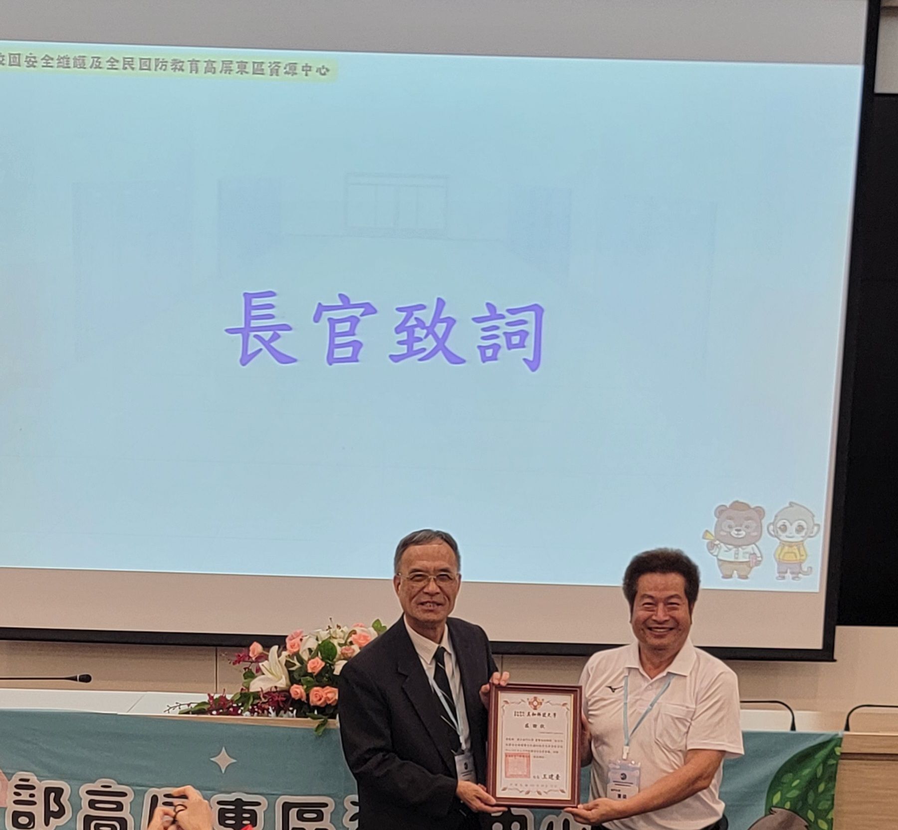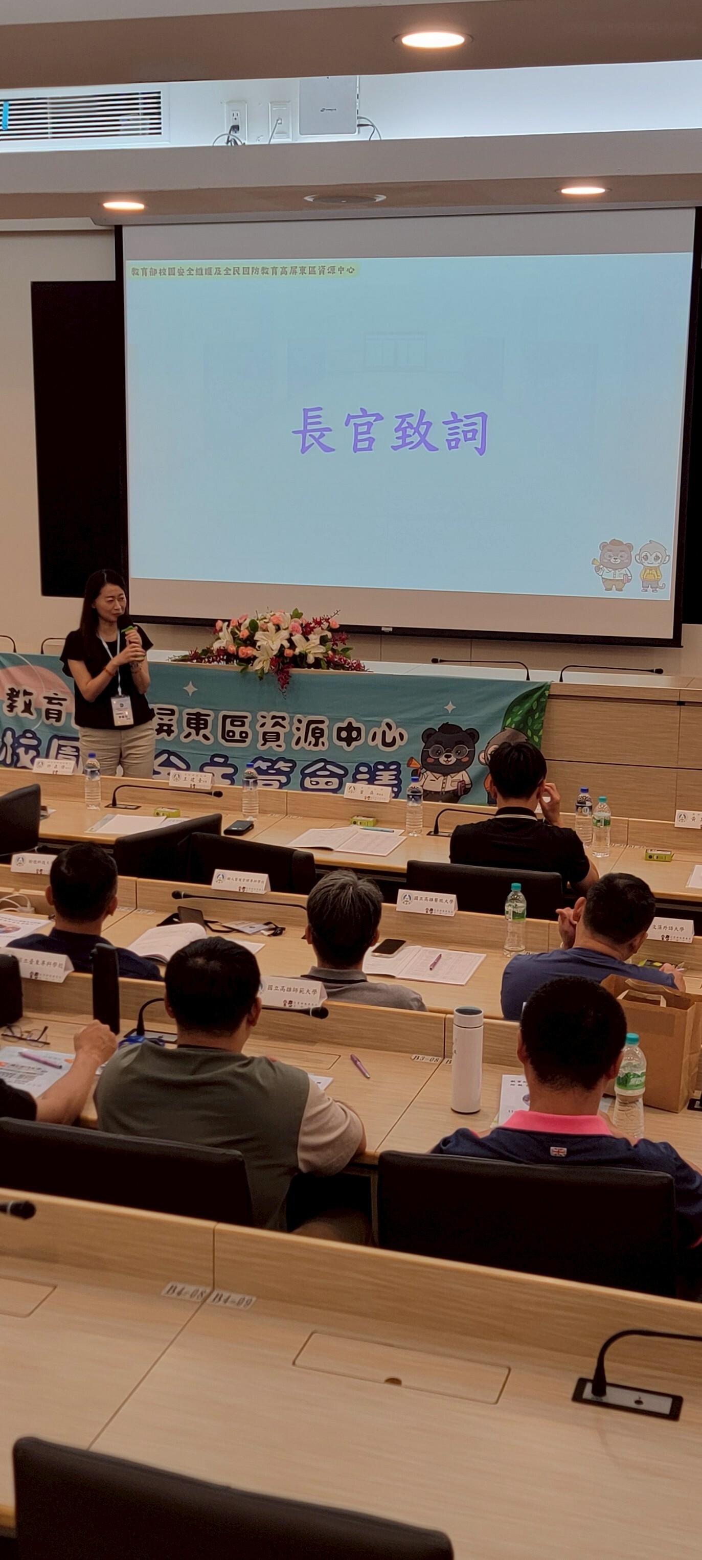 接著下午開幕式由教育部學務特教司許嘉倩副司長主持,金門大學陳建民校長與美和科大王建臺校長共同出席,許副司長代表教育部對在此工作崗位上付出的校園安全主管們表示敬意和勉勵。![]()