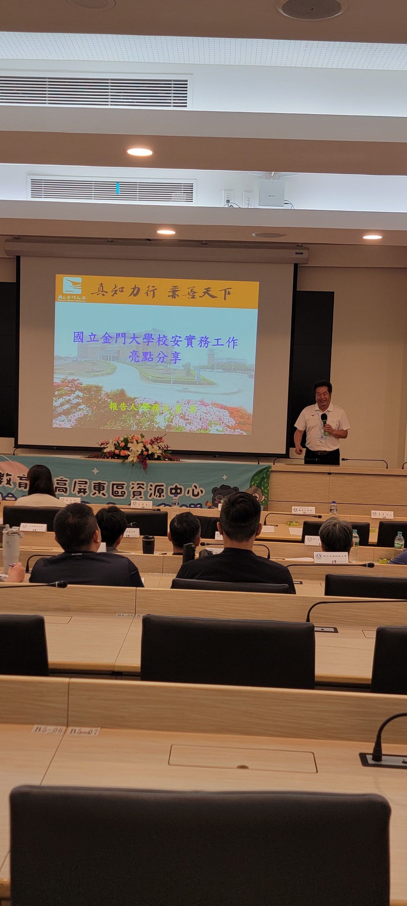 另讓主管們對校園安全專業知能落實扎根、溫故知新,安排「金門大學校安實務工作亮點分享」,藉由校園實務經驗、創新作法及亮點分享,經由聆聽與對話的交互過程,增加各校校園安全主管彼此之間的橫向聯繫,並促進友伴關係,使未來校園安全工作之推動更具助益。