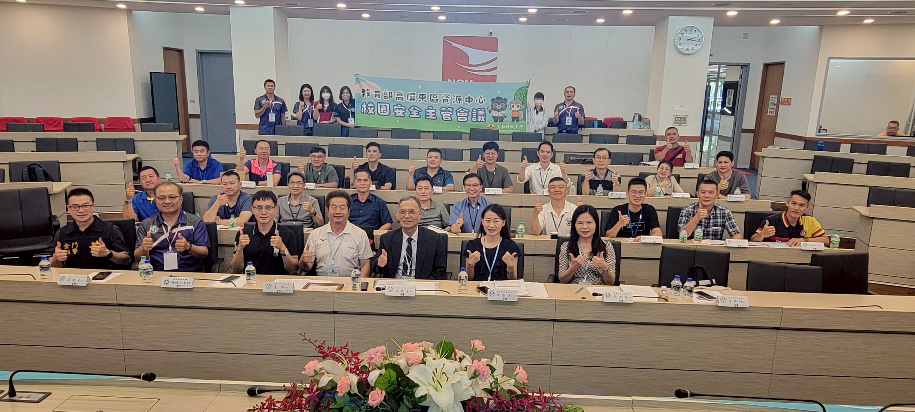 為進一步加強轄屬25所大專校院校園安全主管熟悉當前維護校園安全政策,促進經驗分享、傳承及互動交流,凝聚共識並激勵工作士氣,提升維護校園安全工作服務品質,教育部高屏東區資源中心於5月15、16日在金門地區辦理「114年上半年校園安全主管會議」,由資源中心召集人-美和科技大學 王建臺 校長親自領軍,帶領轄區內大專校院校園安全主管及相關承辦人約40餘人前往金門,首先讓與會夥伴能汲取他校校園安全防護機制經驗及接地氣的認識金門,中心精心安排第一站-國立金門大學實務參訪活動,由學務長董燊教授及軍訓室主任許悠洋教官親自接待,進行實地走訪校園安全,董教授活動中表示,保護學生安心就學並確保校園安全,教育單位是責無旁貸;學校落實校園安全防護機制,除加強學生安全意識及宣導被害預防觀念之外,與金門縣警察局密切聯繫建立雙方合作關係並簽訂MOU;並依照校園安全環境檢測評估表,找出「安全」盲點,綿密各項安全作為,減少安全死角及危安因素,完善整體校園安全防護效能;另對於學生校外可能出現的交通意外、涉毒、詐騙等狀況,則力求全方位防範,以減少身體、生命和財產的損失。![]()