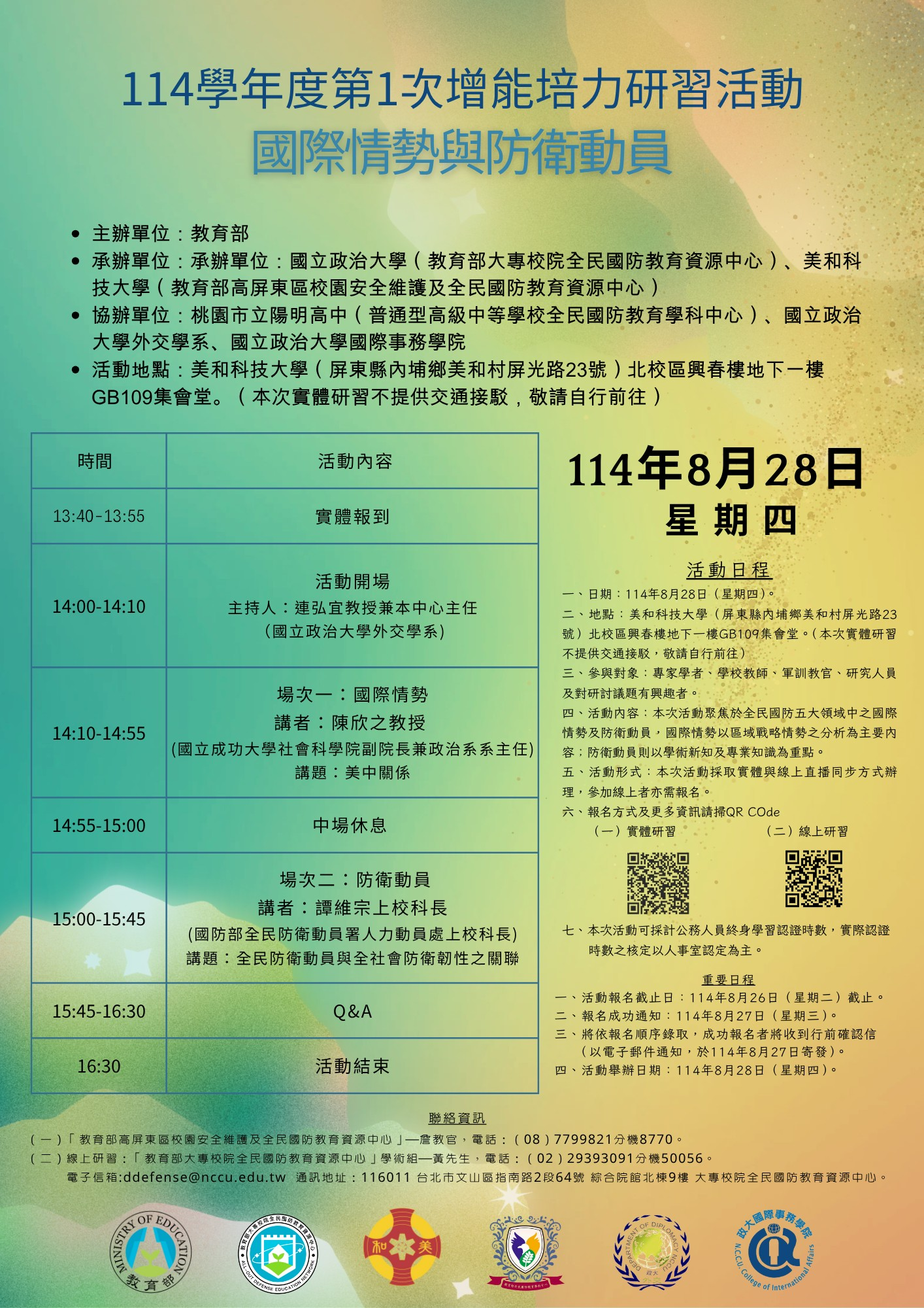 教育部高屏東區校園安全維護及全民國防教育資源中心114學年度第1次增能培力研習活動暨第三季專業研討專業研討