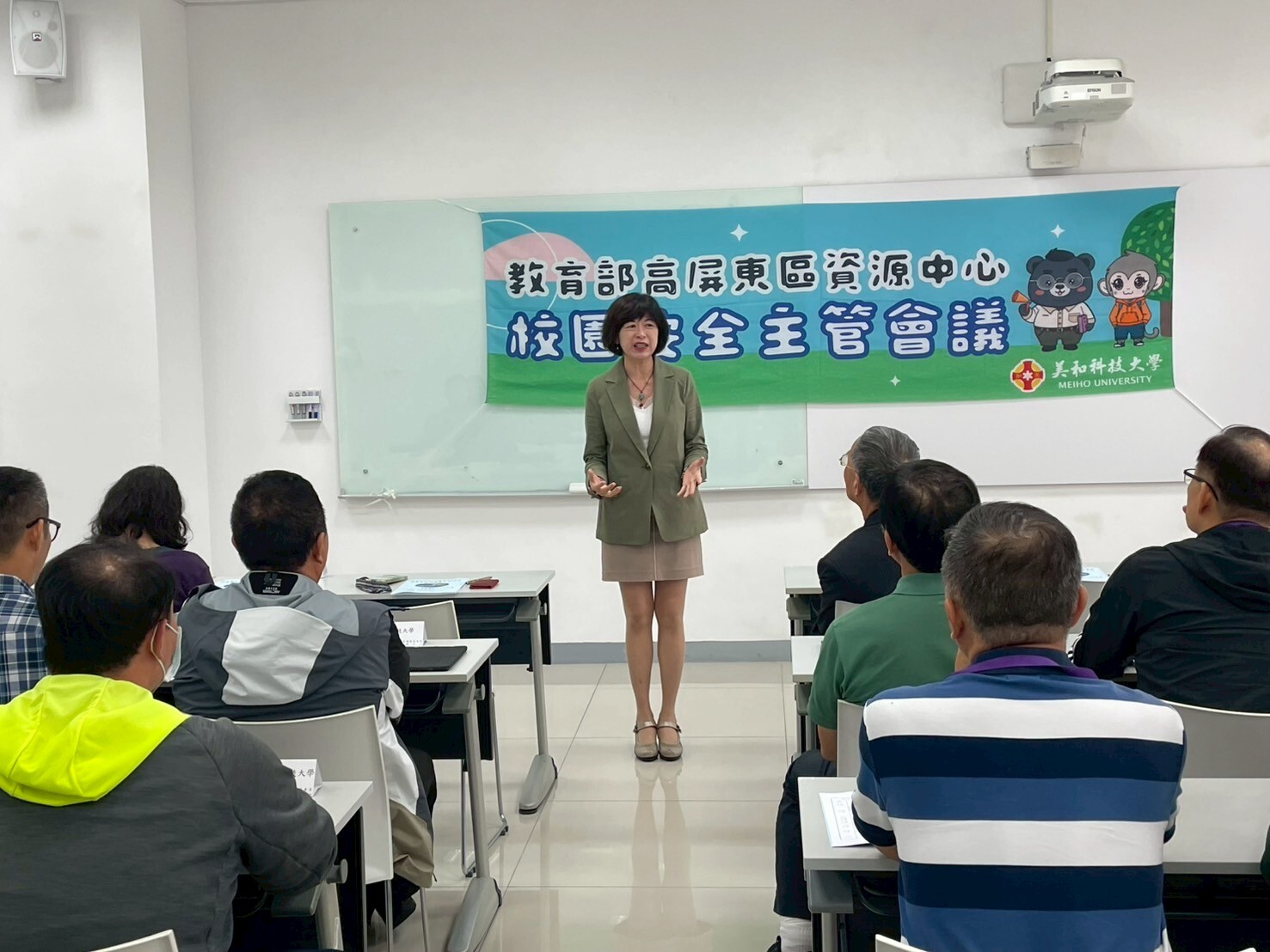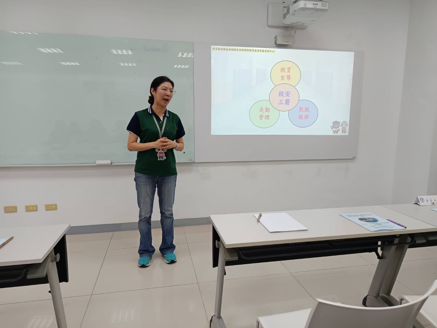 接著由資源中心詹慈慧教官說明,為增進各校校園安全相關工作經驗交流,校安主管會議排定”推動校園安全工作心得分享”,透過不同學校的視角,重新檢視校園安全工作精進的方向。
