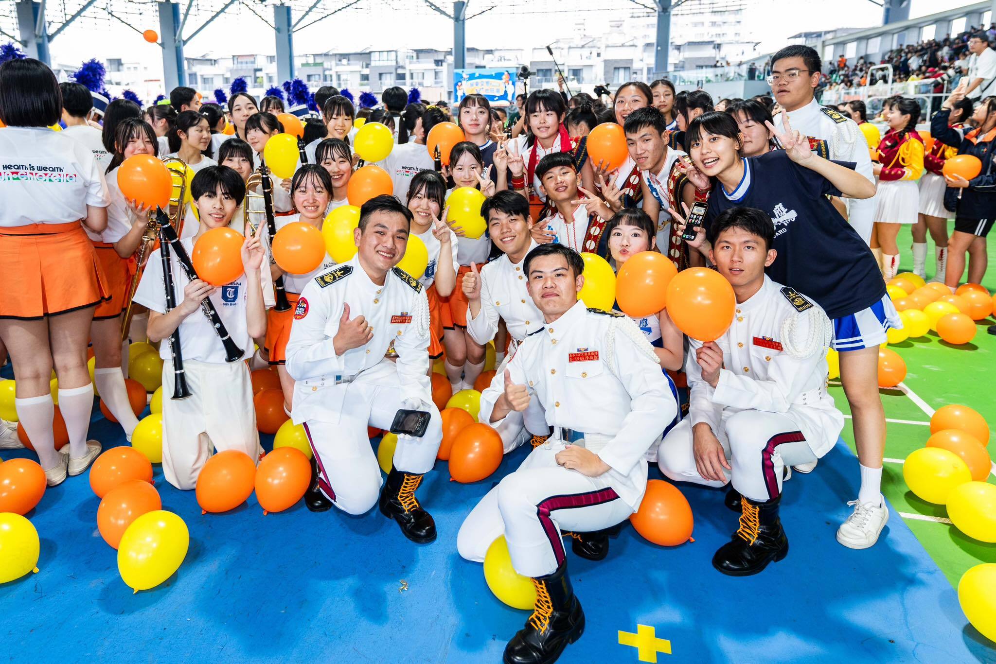 橘色惡魔壓軸登場 魅力震撼全場 作為壓軸演出的日本京都橘高校吹奏樂部,帶來其標誌性的「學院風格(College Style)」表演。這支成立於1961年的全日本行進樂隊大賽金牌常勝軍,以充滿活力的「橘式笑容」及精湛的吹奏與走位技巧,再次向台灣民眾展現其被尊稱為「橘色惡魔」的極致實力與舞台魅力,將現場氣氛推至最高潮。