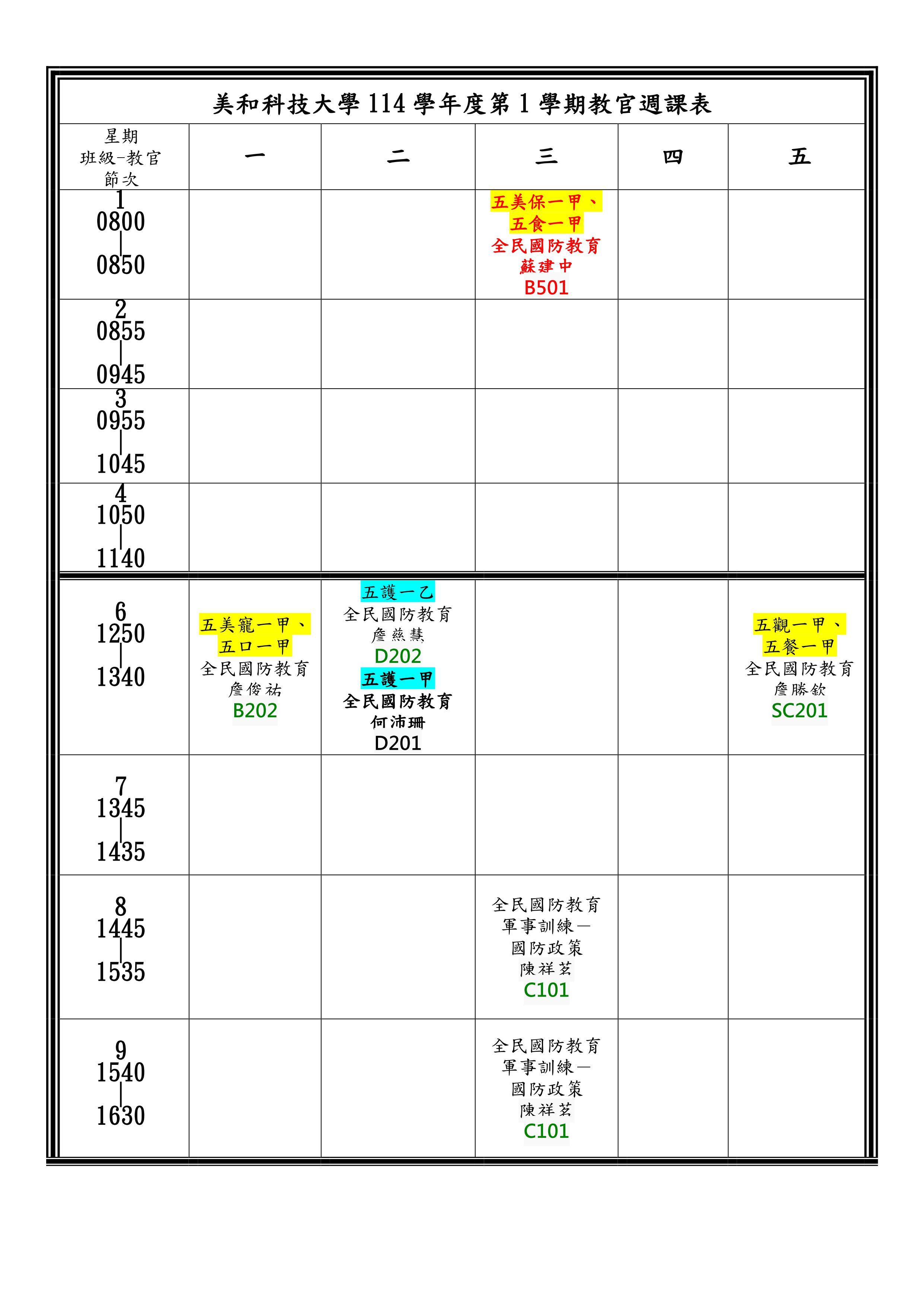 週課表